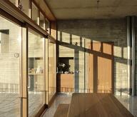 The TRIANGLE HOUSE is an individual house for a small family. When entering, its triangular shape points towards the entrance opening up to the garden. The main façade is oriented south. Five windows on a curved façade generate a continuously changing atmosphere. Outside a variable curvy shadow on the wall; inside an ever varying light and multiple orientations. From its lights and materials the project vibrates with time and seasons. Natural white bricks, diverse brick apparatus, corrugated anodized steel, natural aluminum frames, concrete and wood… All react and reflect the environment. Sober and yet alive. The combination of the circular façade with the triangular roof generates two covered terraces. In concordance with the sun path the house avoids overheating in summer and comfort in winter. The house is small, compact but generous. Half a square, the plan is an agglomeration of spaces, avoiding corridors. The living area is open but still capable to propose more intimate zones thanks to the curve and some floating elements. The chimney, the kitchen island or the wooden structural pillar articulates this fluid space. With a ceiling bending from 2.5m to 4m height the living area is neither a loft nor a “classical” plan, the project combines the best of both worlds. A buffer layer hosting the entrance, the circulation, the kitchen, the bathroom and all technical functions shield the house from the built environment, giving it increased independence.
