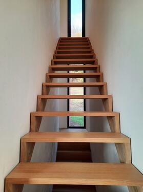 The main ingredients are : - a terrace and living rooms to the south, benefiting from the last sun rays and a bird's eye view, - a compact volumetry with double height opening for the living room allowing real communication between the 2 levels - framed views of the landscape in the rooms The existing volume being too small for the needs of the family, the project provides an extension at the front of the house and an additional staircase on the side, allowing easier access between the different levels. The extensions thus created form a covered space in front of the entrance area and a covered terrace. The facades of the existing part are completely enveloped in order to recreate a coherent overall composition. The 4-sided roof is replaced by a flat roof, with several advantages : lightening of the volumes allowing the sober integration of the necessary extensions, technical and economic simplifications, aesthetic suitability on a sloping ground.