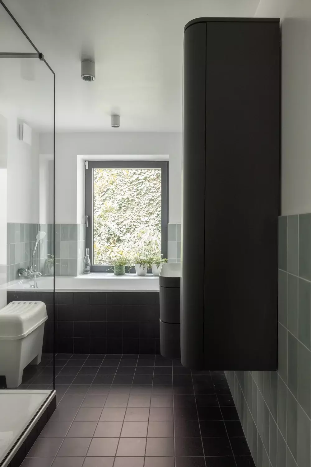 Particular attention was given to the enhancement of existing elements, limiting demolition and reusing materials in situ (tiling, fireplace surrounds, joinery, parquet flooring, etc.).